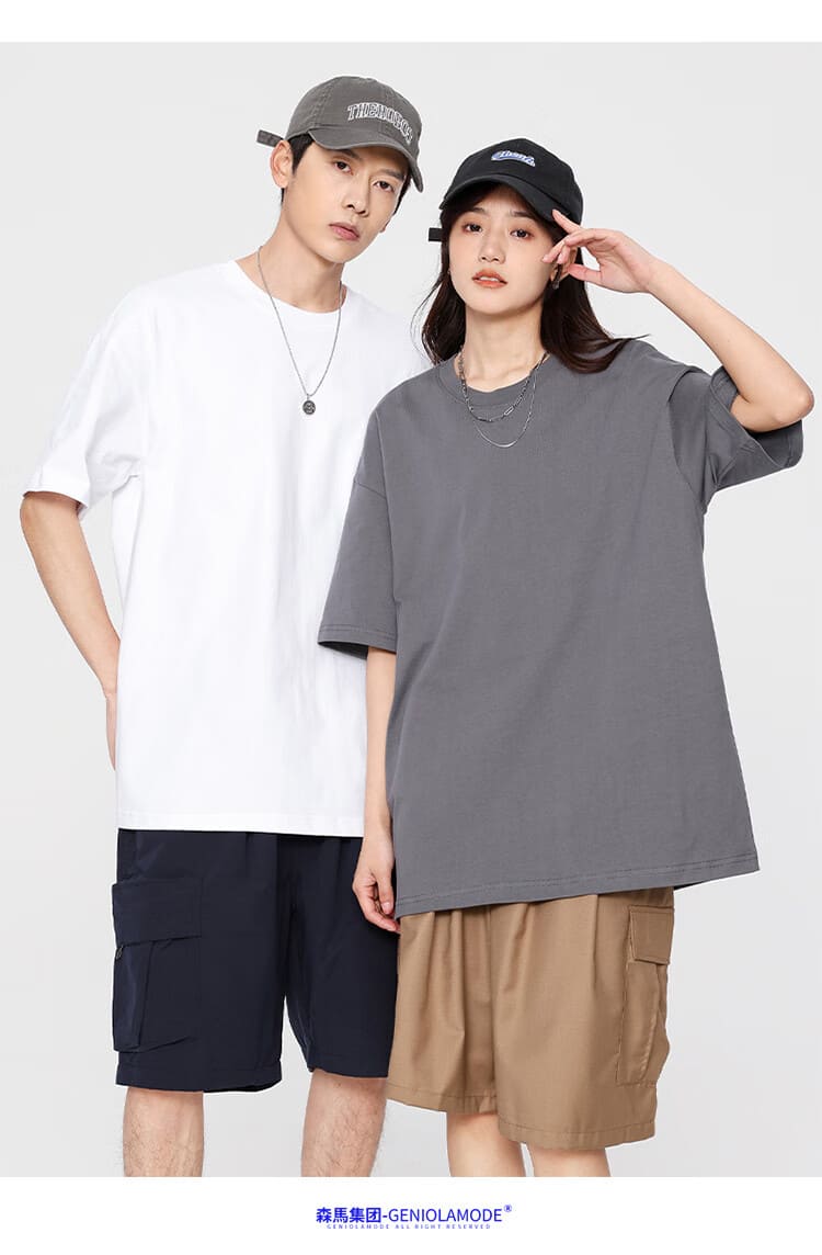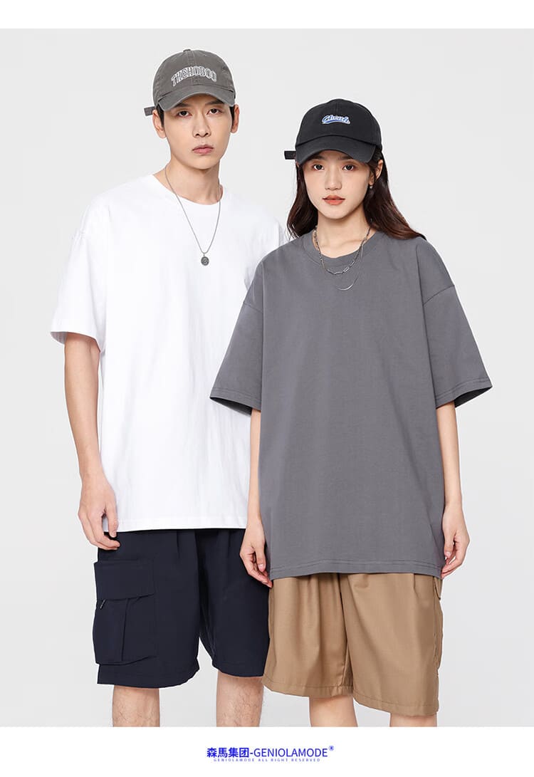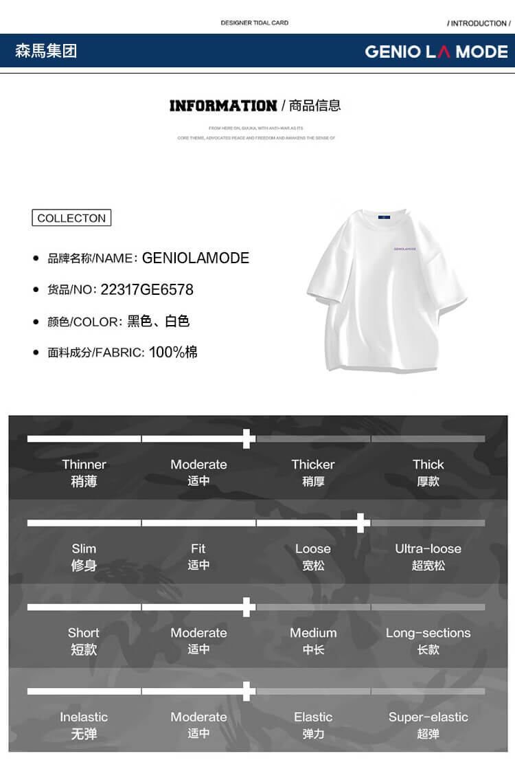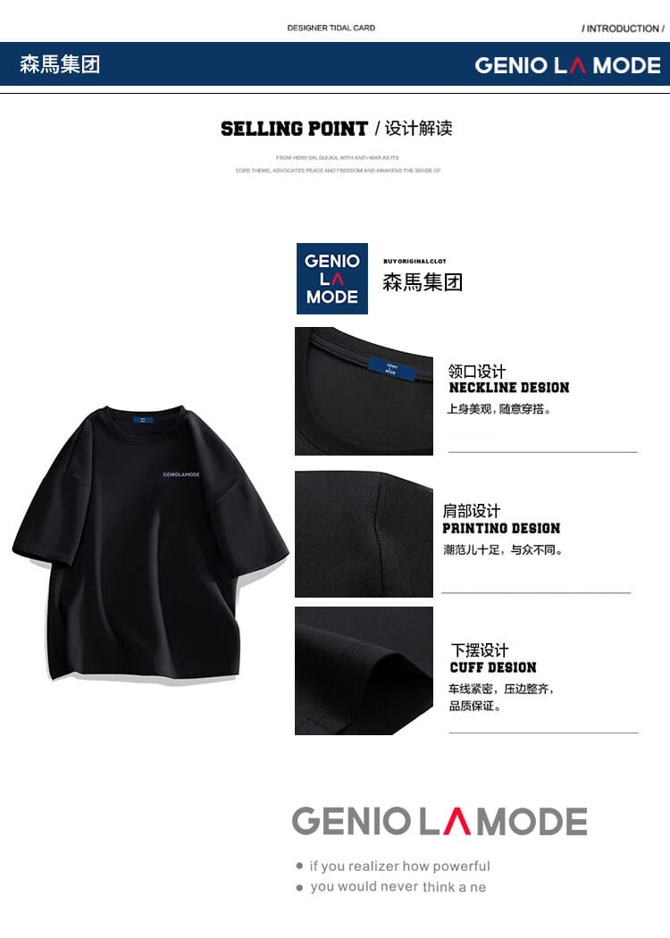 GENIOLAMODE森马集团短袖T恤男潮牌简约logo印花宽松百搭纯棉夏装 白色L