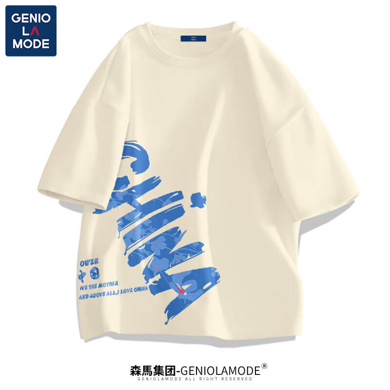 GENIOLAMODE森马集团短袖t恤男夏季纯棉国潮China大码肥仔显瘦圆领休闲体恤衫 黑色(大字母中国右下标) 2XL(155斤-175斤)