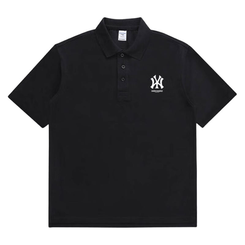 圣缔亚纳潮牌polo衫男2023新款商务休闲NY男士翻领短袖潮ins宽松大码打底P 黑色POLO XL(135斤-160斤)