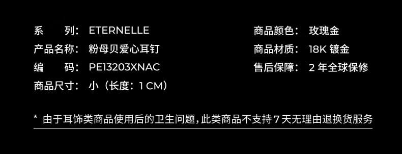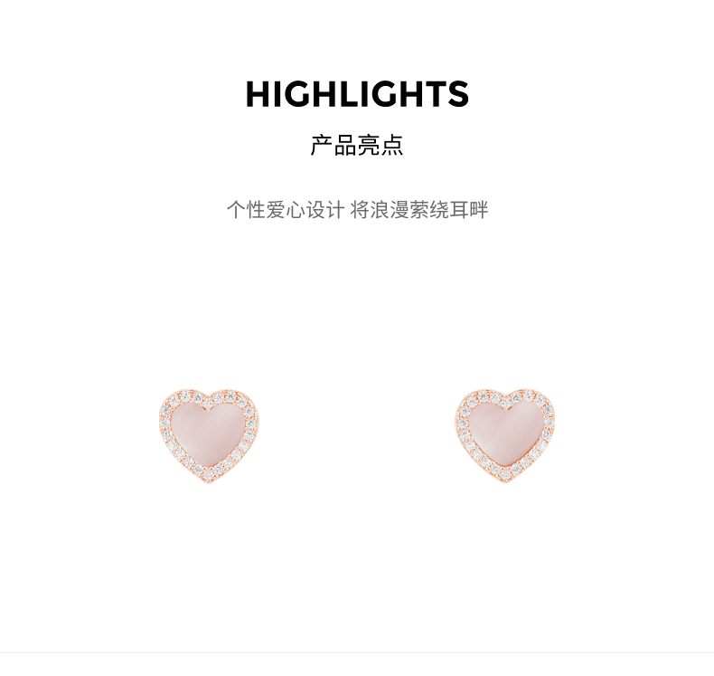 APM Monaco粉母贝爱心耳钉女耳饰时尚饰品简约气质个性潮流欧美风 生日送女友闺蜜老婆情人节礼物